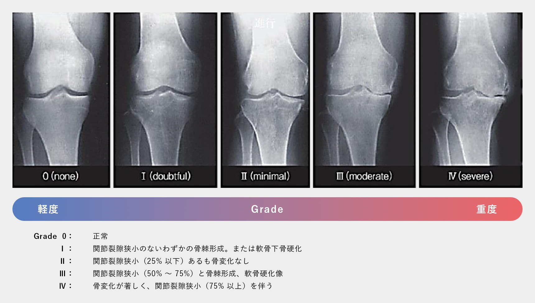 変形性膝関節症は変形の進行具合によって、以下の 4つのステージに分けられます。