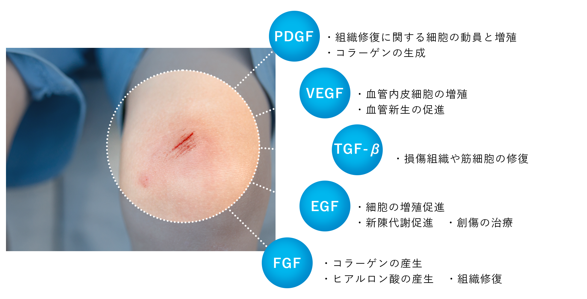 人間には元々、傷を治す力があります。例えば、子供の頃に転んで膝を擦りむいた事もあると思います。傷が出来て、出血しても、かさぶたが出来て治る経験をされた方も多いと思います。それは、出血した血の中の血小板に強力に傷を治してくれる再生因子があるからなのです。