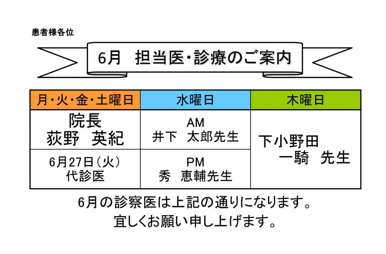 23年6月代診日程について